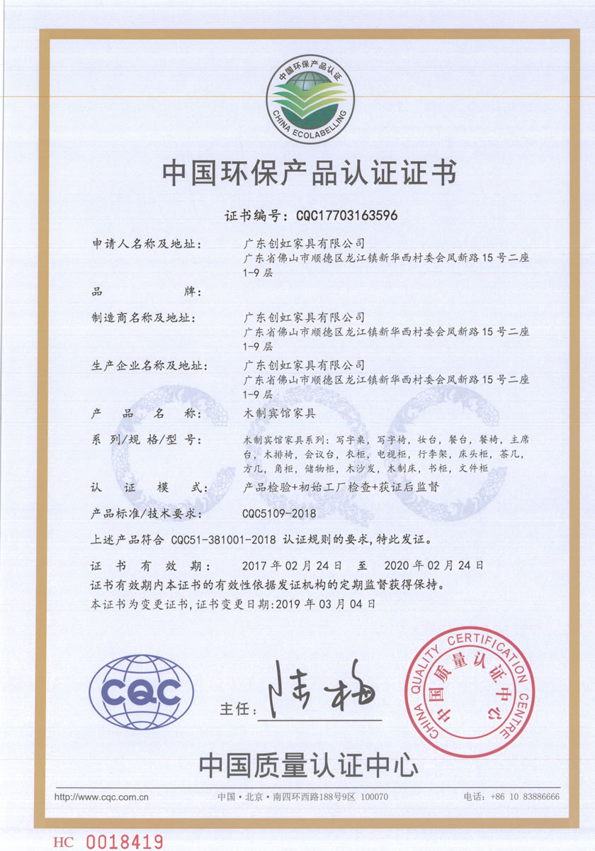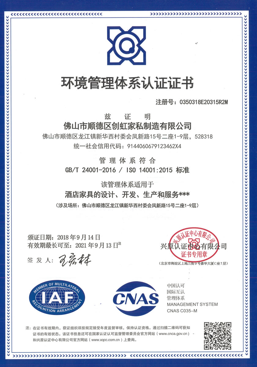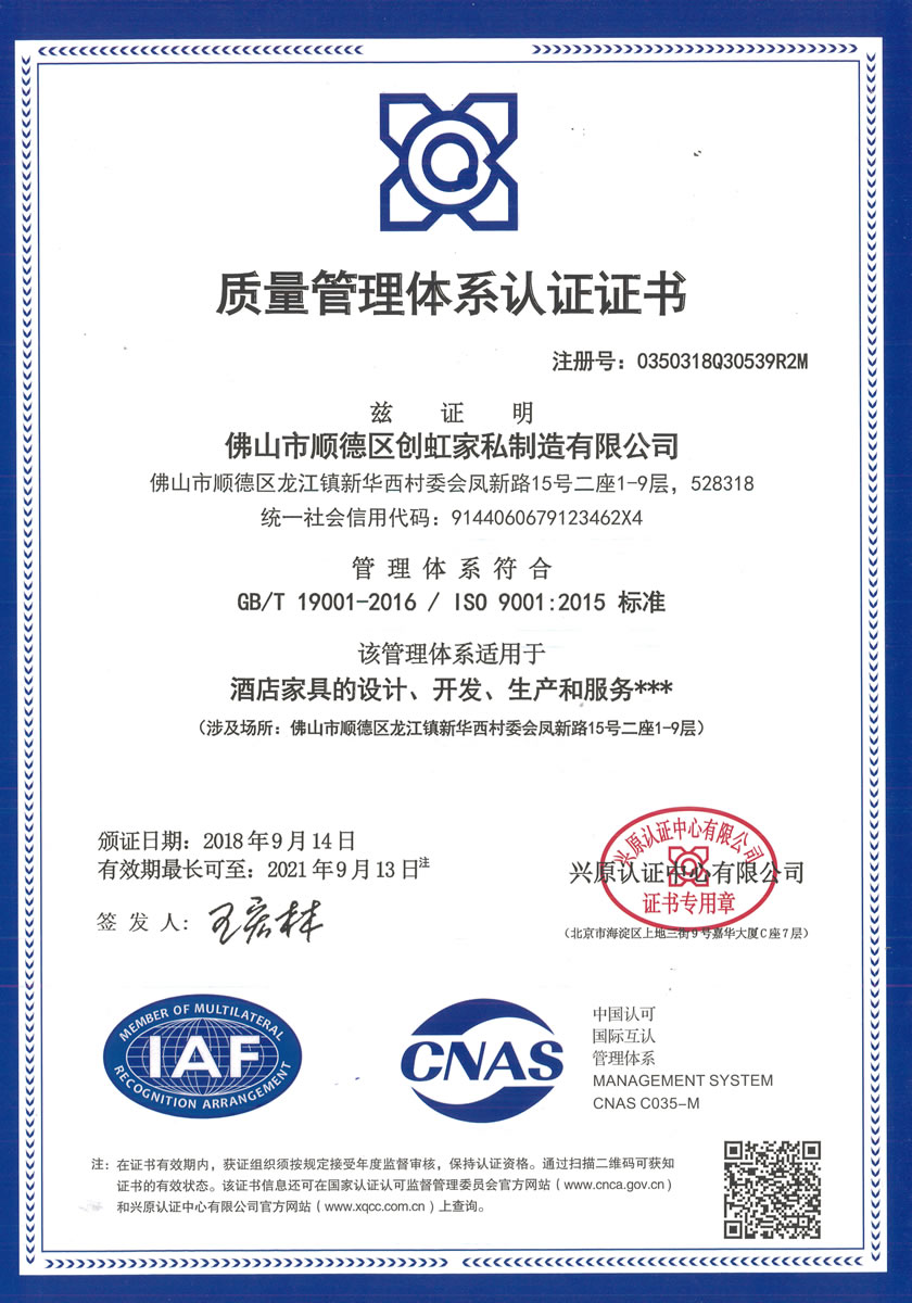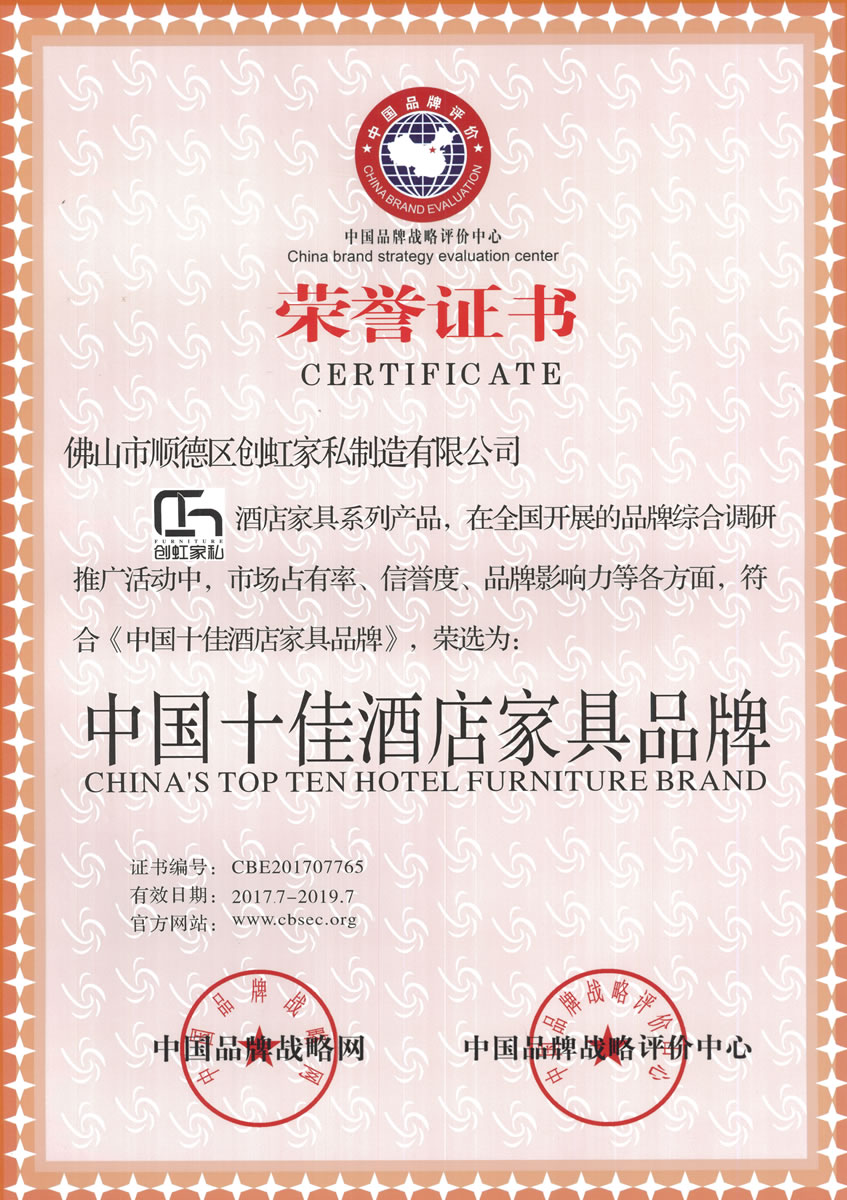 廣東創虹家具有限公司,位于素有“家具之都”稱號的廣東省佛山市順德區,是一家專業策劃、設計、生產、安裝酒店家具的制造企業。公司現有現代化廠房4萬平方米,擁有國內外先進的家具制造生產設備和家具生產技術工藝